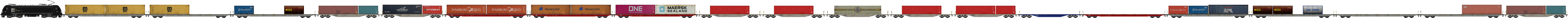 (beladen (ONE, Maersk)/Rot, Rail-Cargo Austria) 21,5 t/25,9 m