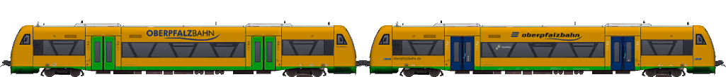 (Oberpfalzbahn 650 674 (VT 41)…/Gelb/grün (Oberpfalzbahn…) 43 t/25,4 m